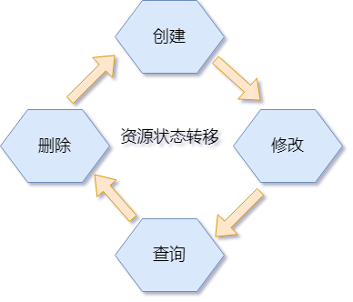 搞懂了「资源描述性」接下来看下什么是「状态转移」?状态转移就是客户端通过一系列请求动作,推动服务端的资源状态发生变化,资源的状态可以在「创建-修改-查看-删除」之间转移。
